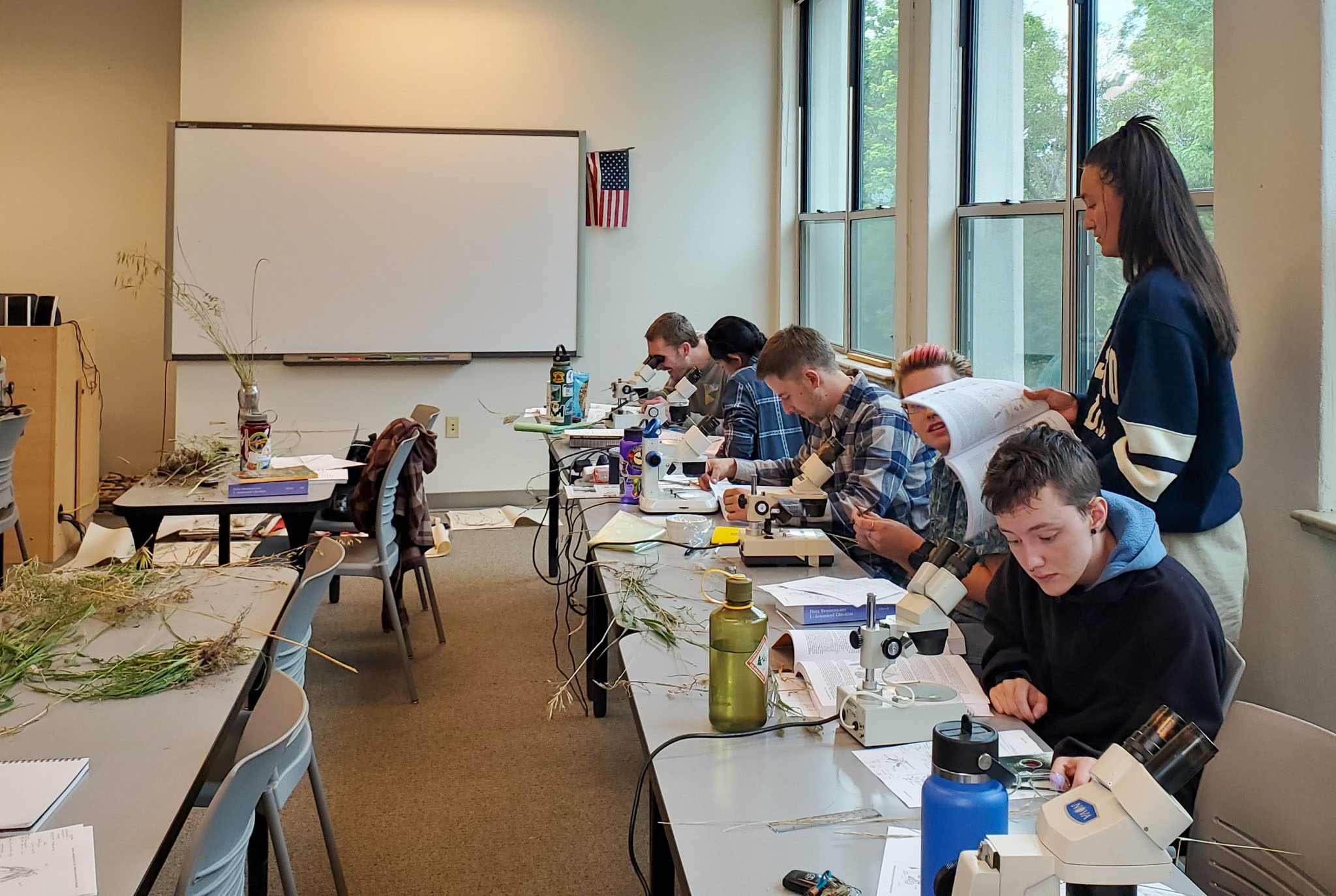 NMFWRI and NMDGF staff and student interns spent three days in a botany and grass workshop hosted in Las Vegas, NM this August as part of our FIRENM initiative. Under guidance of instructor Lauren Bansbach, the team got a refresher on botanical principles and terminology, then dove deep into the realm of grasses, under the microscope and in the field. Professional development opportunities like these are critical to quality field data collection and other efforts at NMFWRI. It was also clear that the staff participating love their work, as more than one said that dissecting tiny plant parts under the scope while poring over thousands of pages of dichotomous keys “felt like a vacation.”