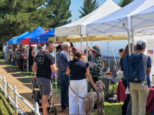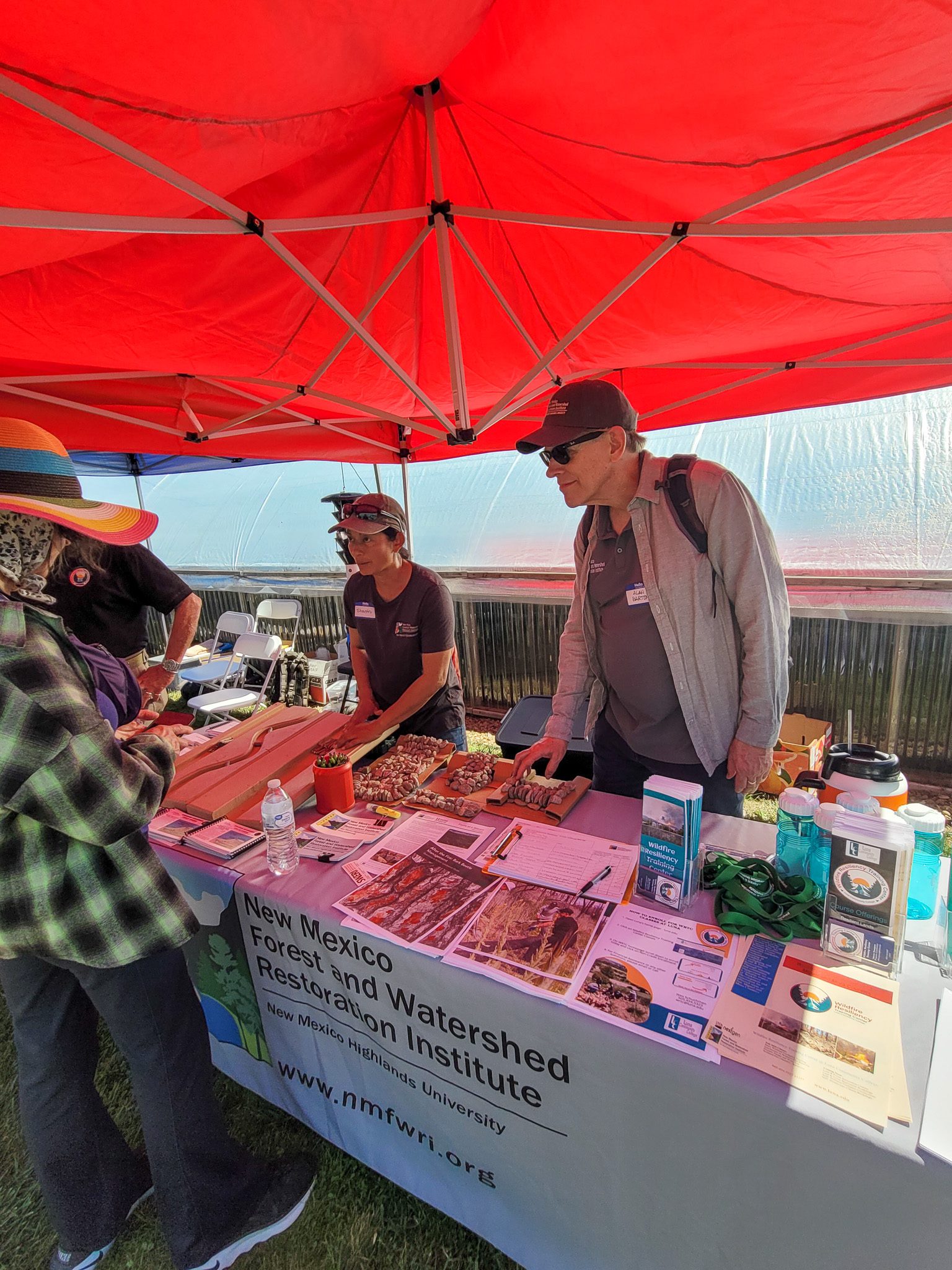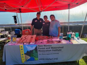 Shantini Ramakrishnan, founder and program manager of the Conservation Science Center and Querencia in Action land restoration workshops, used carved wood cutouts of rivers to demonstrate how rocks and logs can be used to create low-tech and effective structures to reduce erosion, especially after wildfires. She was helped at the booth by Raymundo Melendez, Outreach and Education assistant and Hank Blackwell, director of the Wildfire Resiliency Training Center at Luna Community College. NMFWRI director Dr. Alan Barton helped out and took photos!