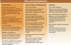 What research would help inform and move forward the ability of communities and land managers to recover from wildfires and restore landscapes? A multi-disciplinary team
