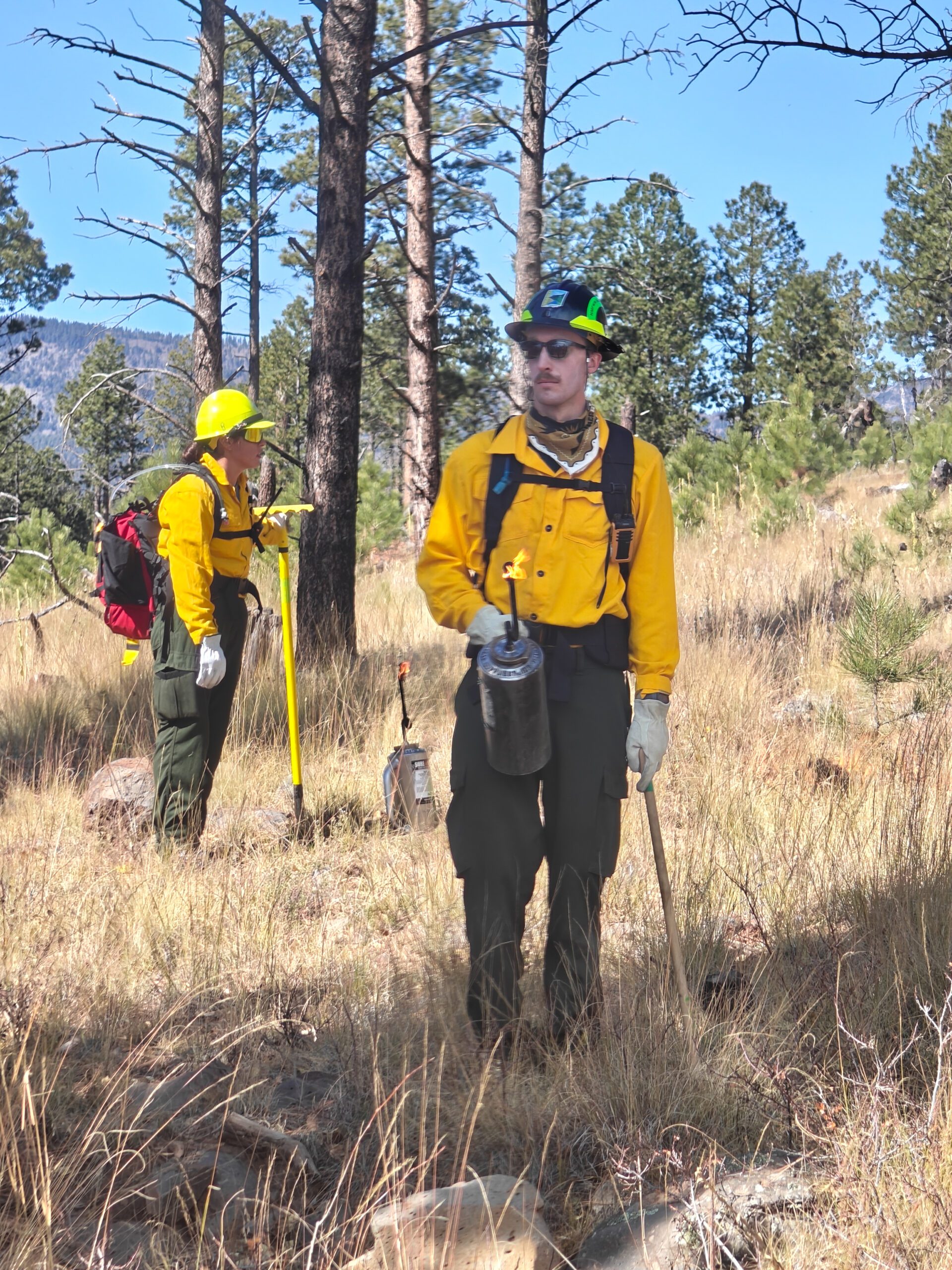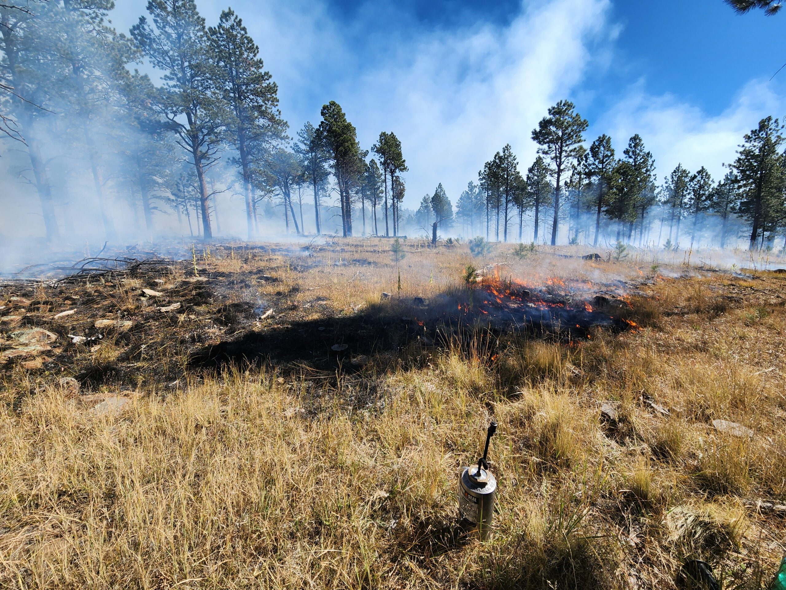Staff from NMFWRI’s Ecological Monitoring and Collaboration Programs worked with the New Mexico State Land Office, Forest Stewards Guild, The Nature Conservancy, local fire departments, NMHU prescribed fire students, and others to conduct a broadcast prescribed fire in Black Lake, NM on state trust land in October.